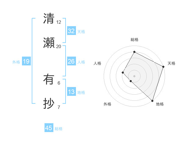 清瀬 有抄さんの天格は32画の5点!