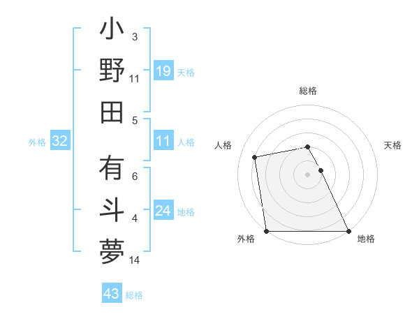 小野田 有斗夢さんを姓名の画数から五運を鑑定