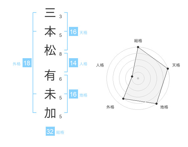 三本松 有未加さんの天格は16画の5点!