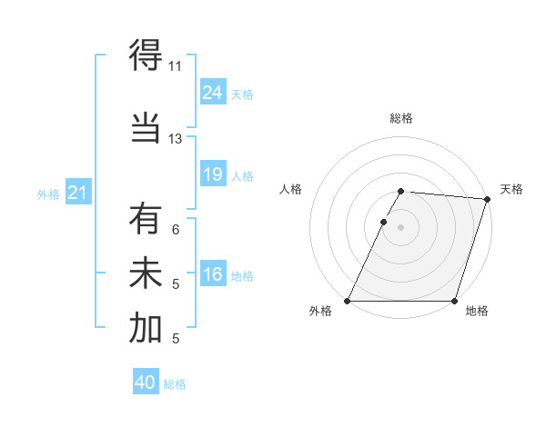 得当 有未加さんの天格は24画の5点!