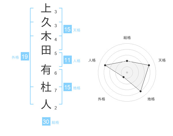 上久木田 有杜人さんを姓名の画数から五運を鑑定