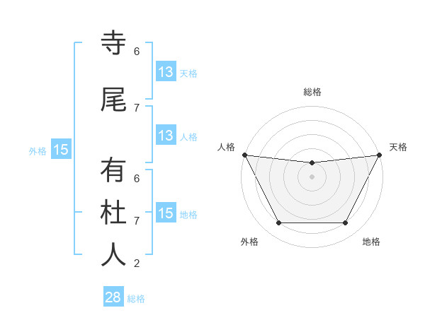 寺尾 有杜人さんを姓名の画数から五運を鑑定