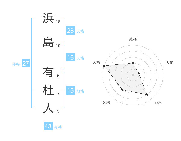 浜島 有杜人さんを姓名の画数から五運を鑑定