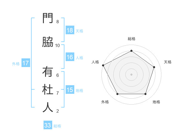 門脇 有杜人さんを姓名の画数から五運を鑑定