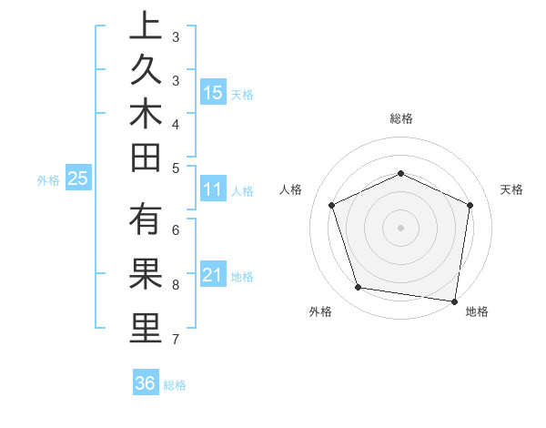 上久木田 有果里さんを姓名の画数から五運を鑑定