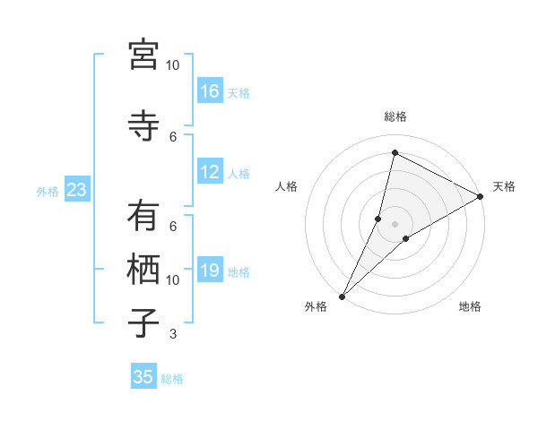 宮寺 有栖子さんの天格は16画の5点!