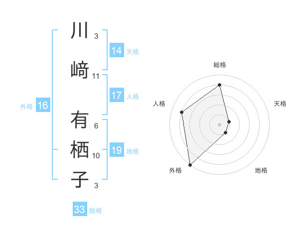 川﨑 有栖子さんを姓名の画数から五運を鑑定