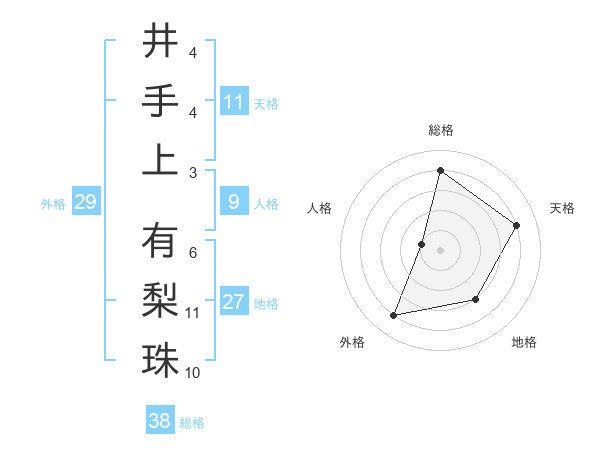 井手上 有梨珠さんを姓名の画数から五運を鑑定