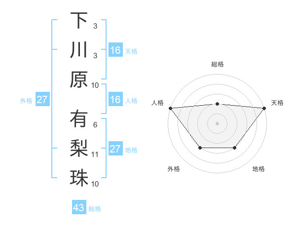 下川原 有梨珠さんを姓名の画数から五運を鑑定