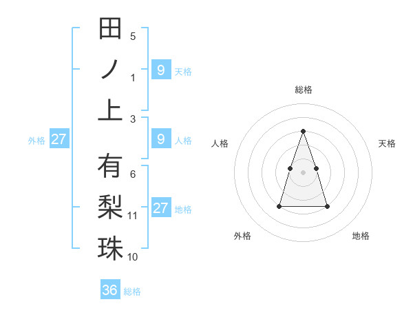 田ノ上 有梨珠さんを姓名の画数から五運を鑑定