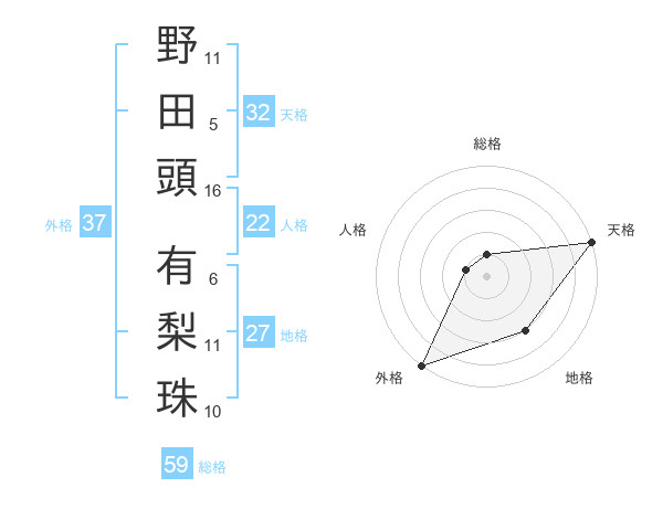 野田頭 有梨珠さんを姓名の画数から五運を鑑定
