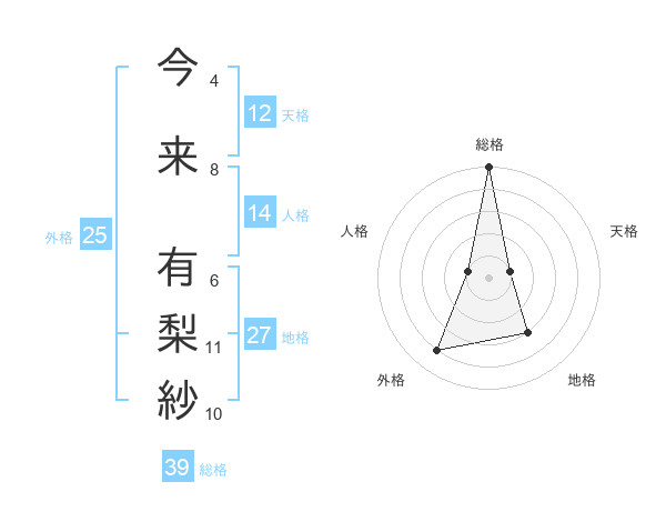 今来 有梨紗さんを姓名の画数から五運を鑑定
