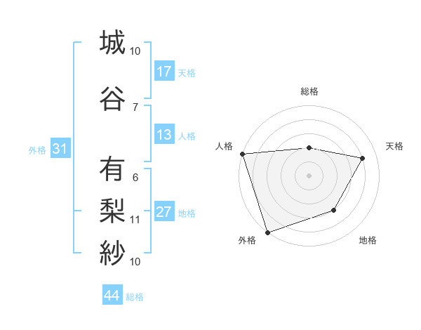 城谷 有梨紗さんの天格は17画の4点!