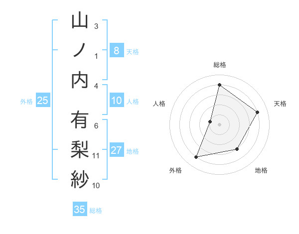 山ノ内 有梨紗さんを姓名の画数から五運を鑑定