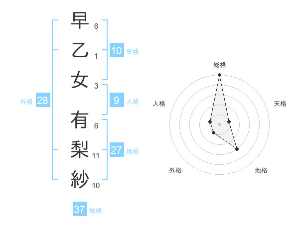 早乙女 有梨紗さんを姓名の画数から五運を鑑定