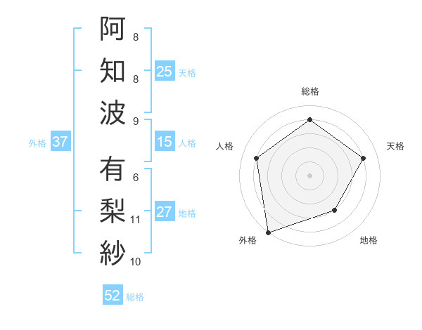 阿知波 有梨紗さんの外格は37画の5点