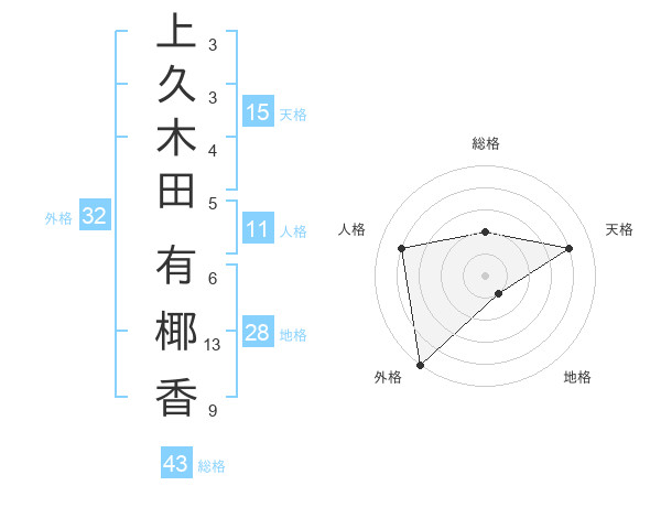 上久木田 有椰香さんを姓名の画数から五運を鑑定