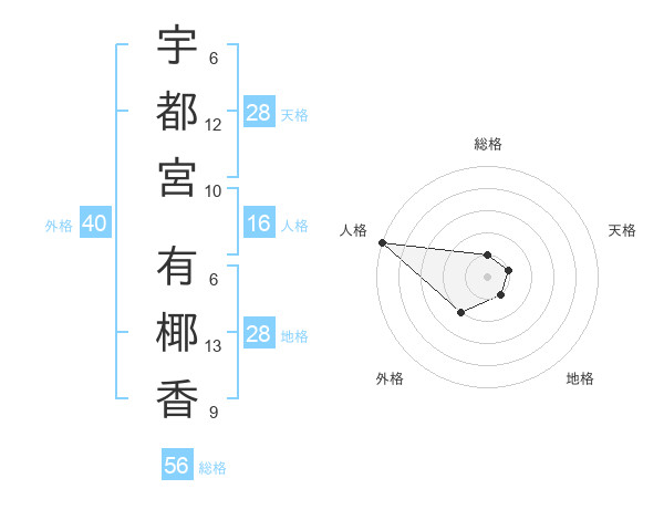宇都宮 有椰香さんを姓名の画数から五運を鑑定