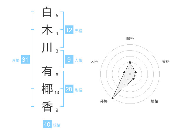 白木川 有椰香さんを姓名の画数から五運を鑑定