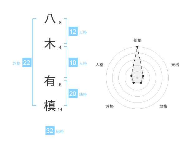 八木 有槙さんの総格は32画の5点!