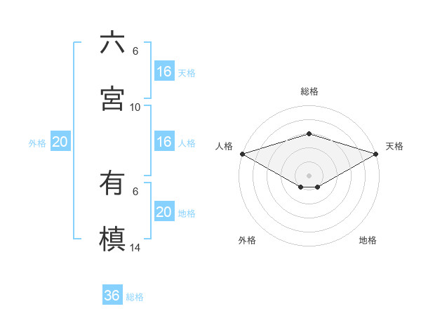 六宮 有槙さんの総格は36画の3点!