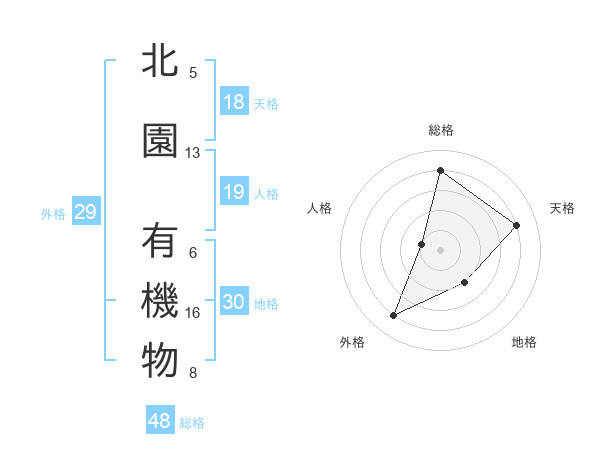 北園 有機物さんの総格は48画の4点!