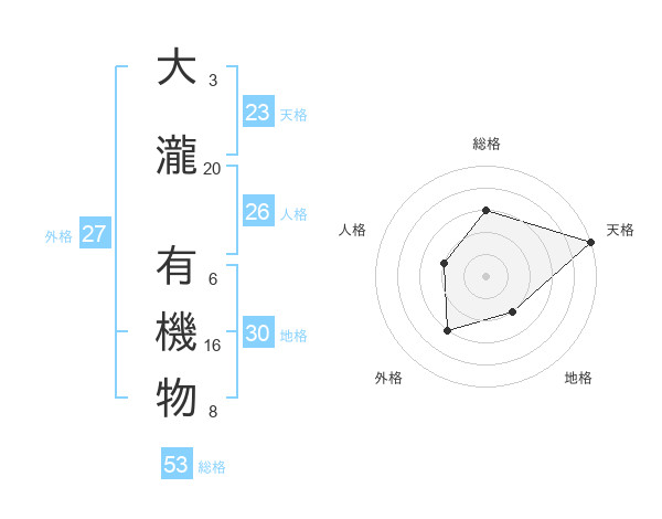 大瀧 有機物さんを姓名の画数から五運を鑑定