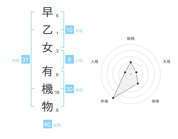 早乙女 有機物さんを姓名の画数から五運を鑑定