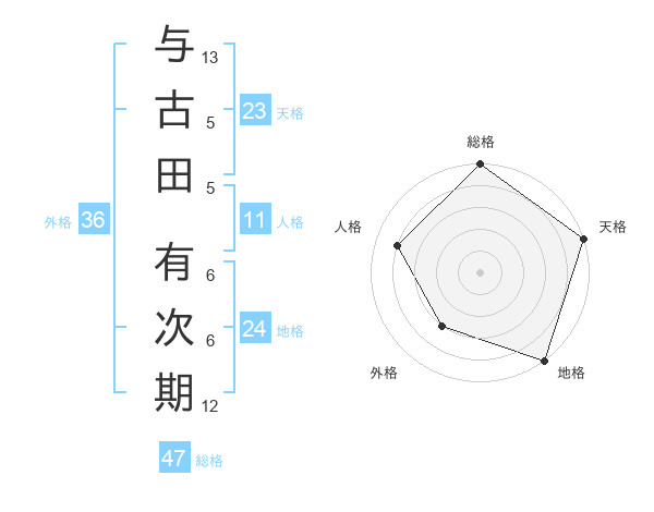 与古田 有次期さんの総格は47画の5点!