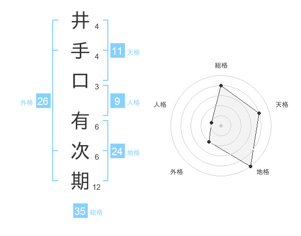 井手口 有次期さんを姓名の画数から五運を鑑定