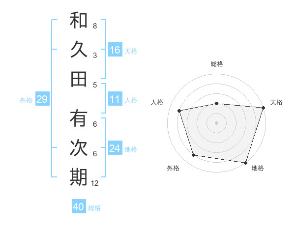 和久田 有次期さんを姓名の画数から五運を鑑定