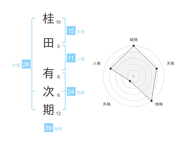 桂田 有次期さんを姓名の画数から五運を鑑定