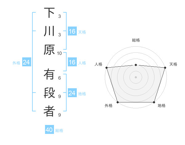 下川原 有段者さんの地格は24画の5点!