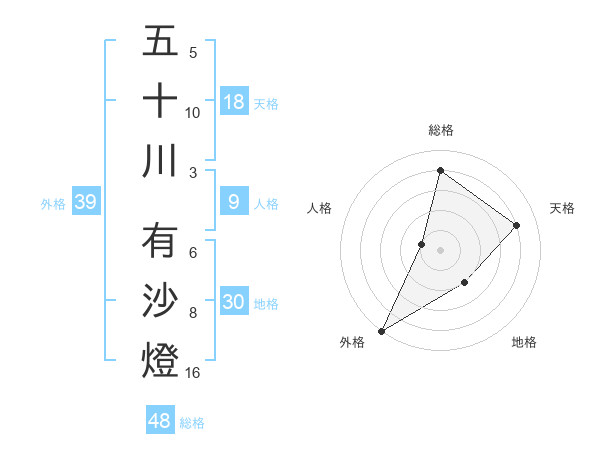 五十川 有沙燈さんを姓名の画数から五運を鑑定