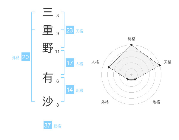 三重野 有沙さんの総格は37画の5点!