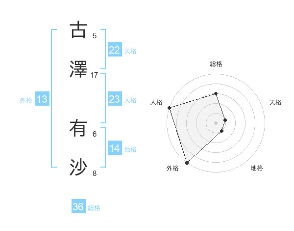 古澤 有沙さんの外格は13画の5点!