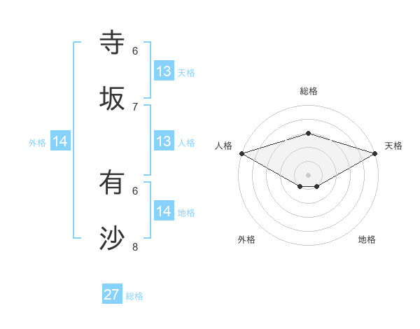 寺坂 有沙さんを姓名の画数から五運を鑑定