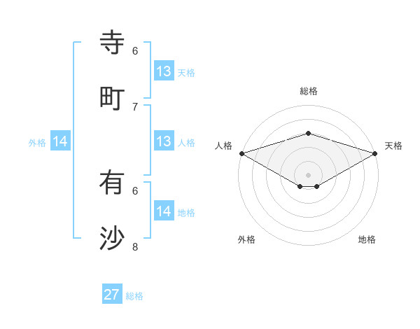 寺町 有沙さんを姓名の画数から五運を鑑定
