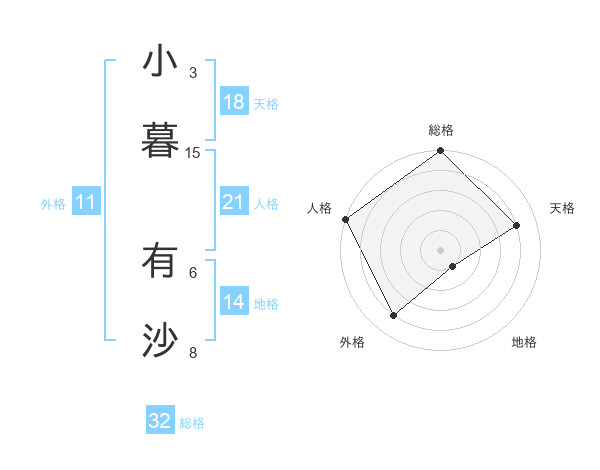 小暮 有沙さんの天格は18画の4点!