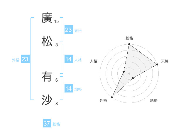 廣松 有沙さんを姓名の画数から五運を鑑定
