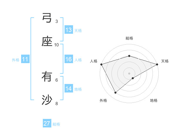 弓座 有沙さんの天格は13画の5点!