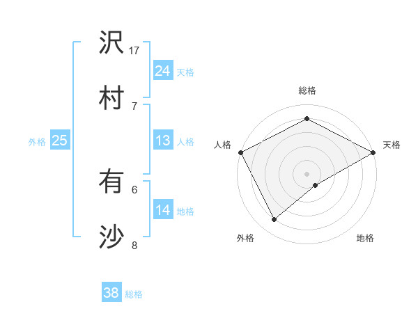 沢村 有沙さんの天格は24画の5点!
