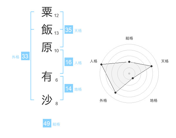 粟飯原 有沙さんの外格は33画の4点!