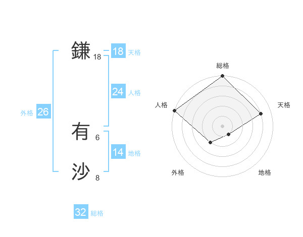 鎌 有沙さんの天格は18画の4点!