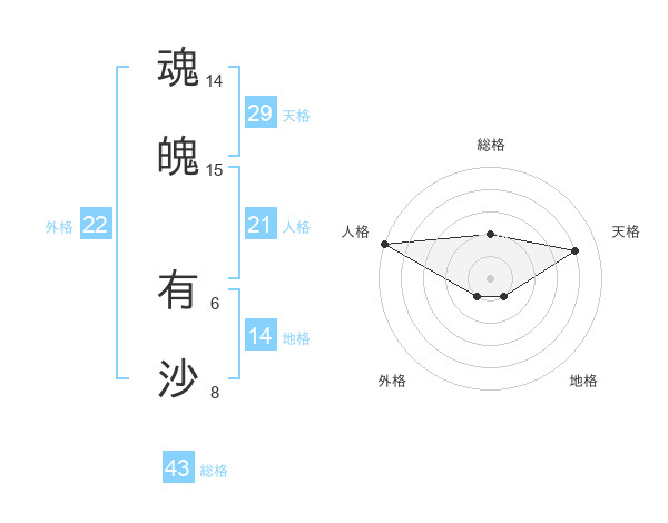魂魄 有沙さんを姓名の画数から五運を鑑定