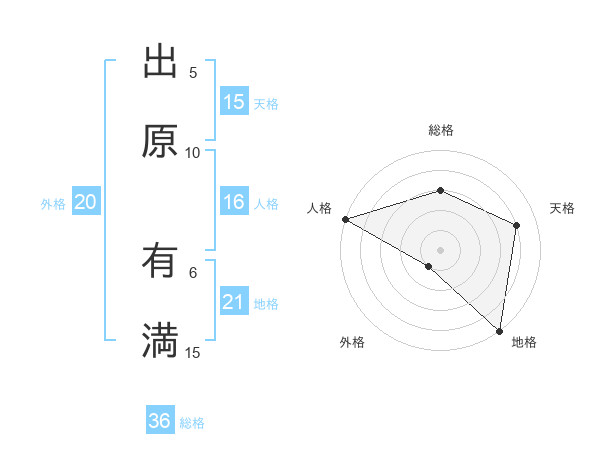 出原 有満さんの地格は21画の5点!