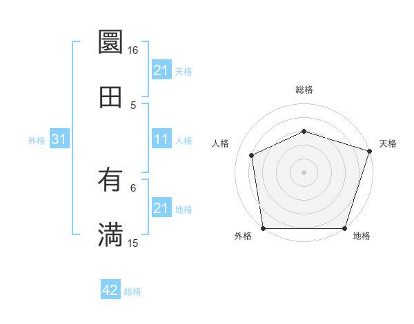 圜田 有満さんの天格は21画の5点!