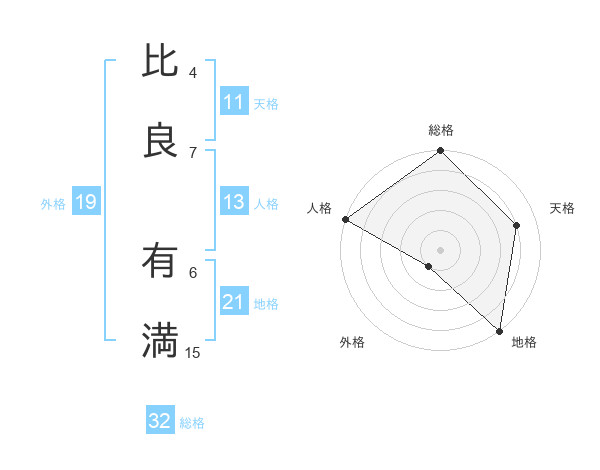 比良 有満さんの総格は32画の5点!