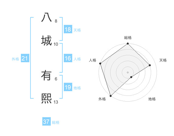 八城 有煕さんの天格は18画の4点!