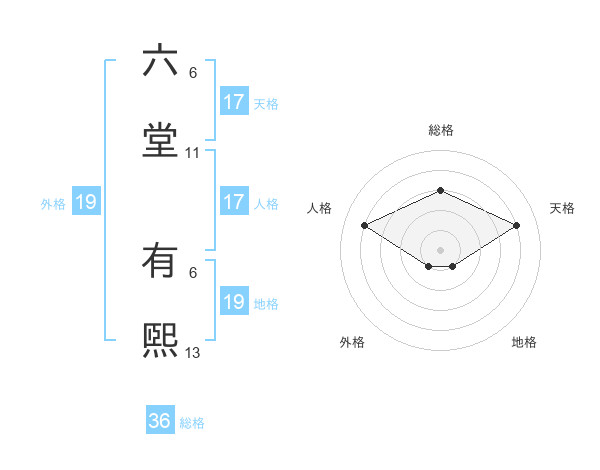 六堂 有煕さんの天格は17画の4点!